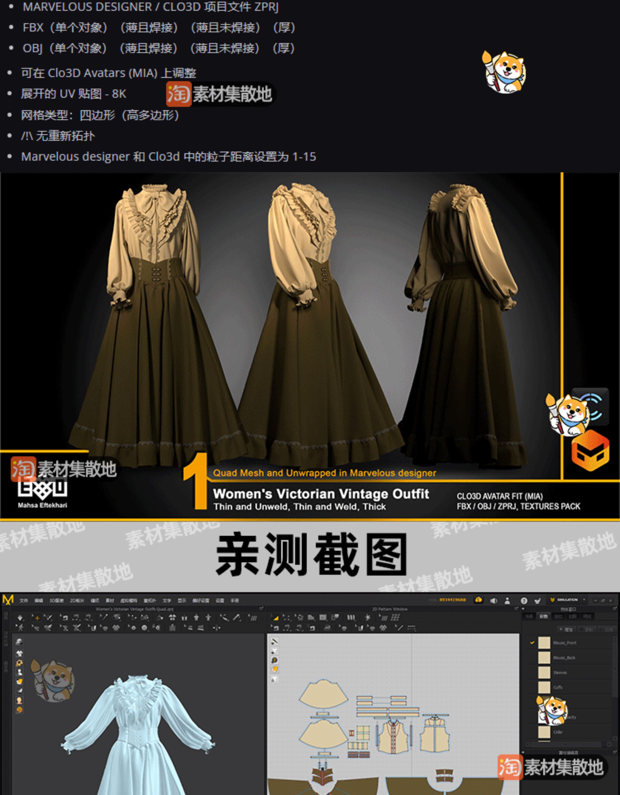 MD维多利亚风格礼服CLO女性复古连衣裙ZPRJ模型打版源文件3D服装