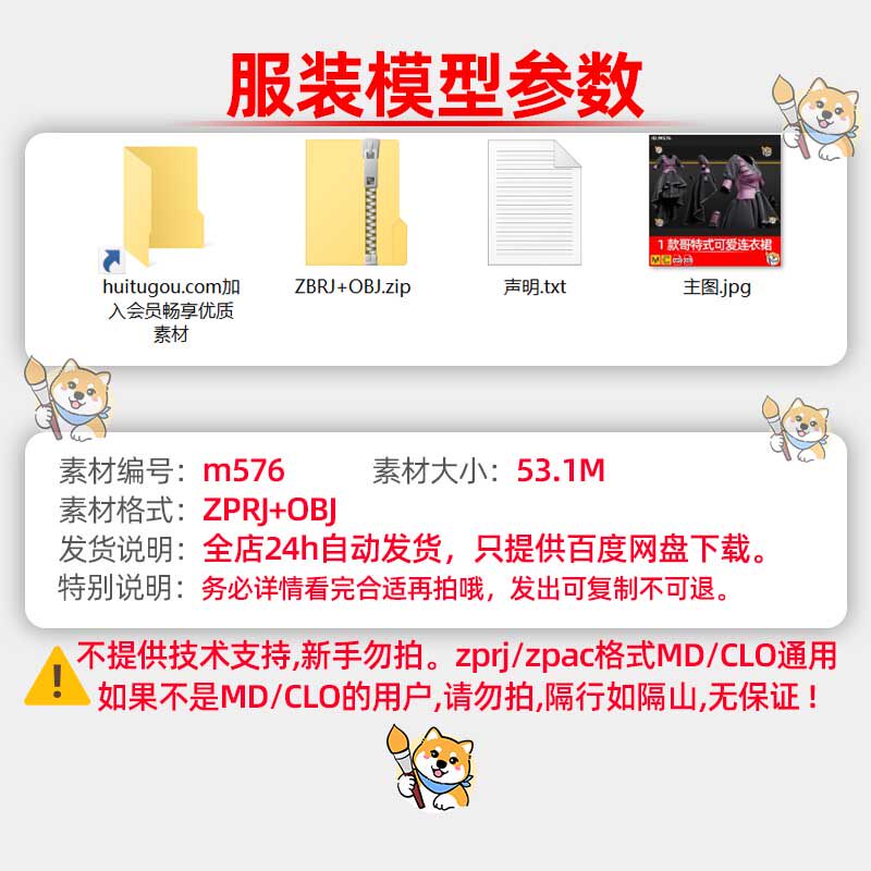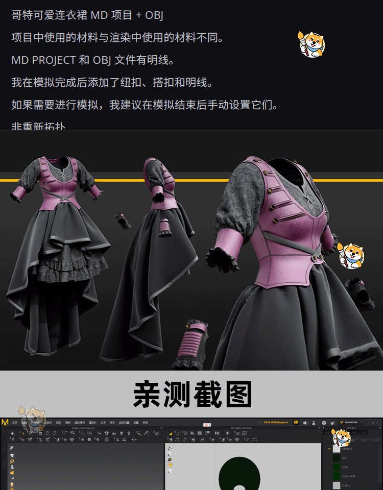 MD/Clo3D衣服模型1款哥特式可爱连衣裙服装纸样版片3D模型素材
