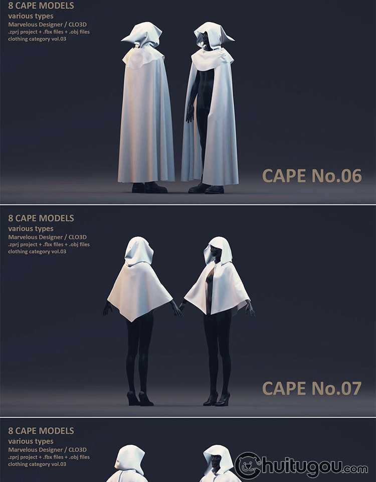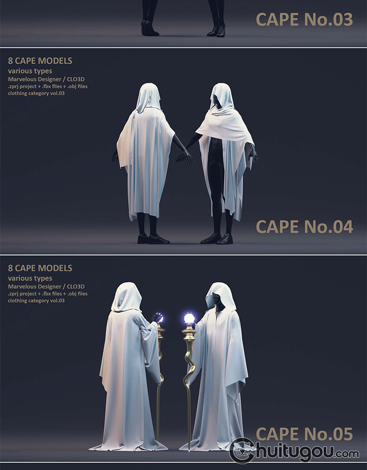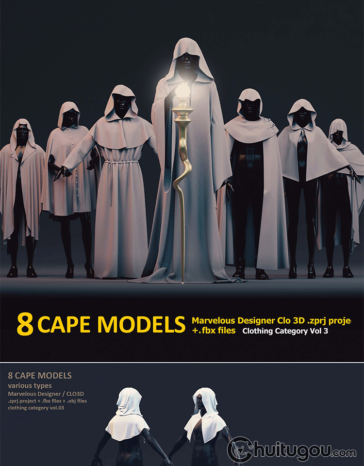 Marvelous Designer男女法式魔法斗篷披风长袍CLO3D服装打版zprj