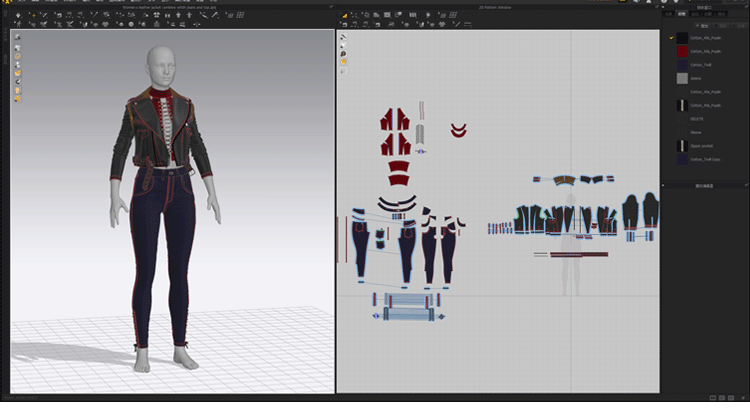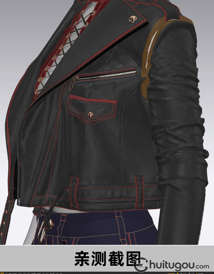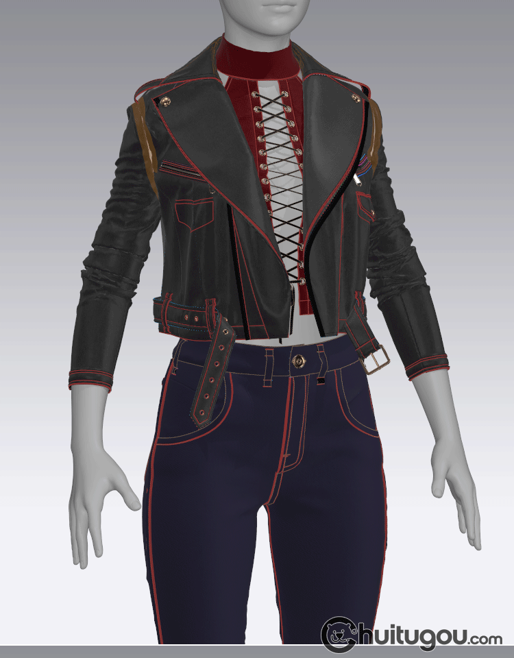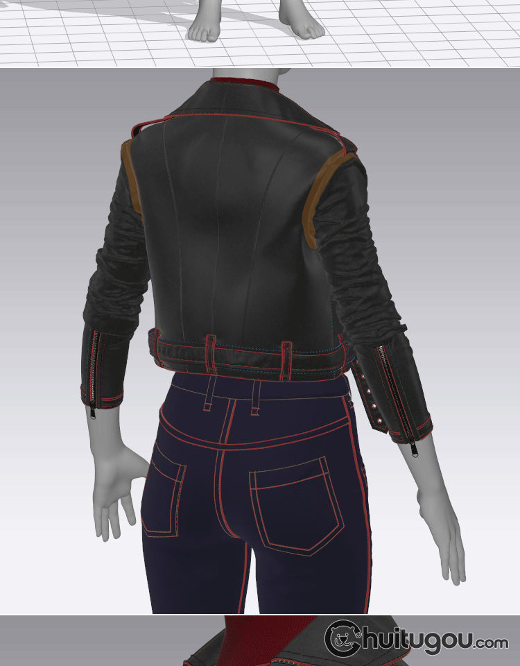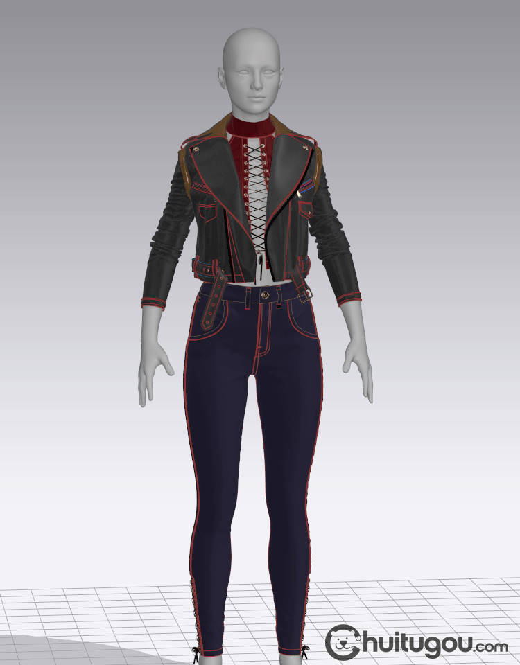 MD CLO3D女性紧身仔长裤子皮夹克上衣zprj服装3D模型打版源文件