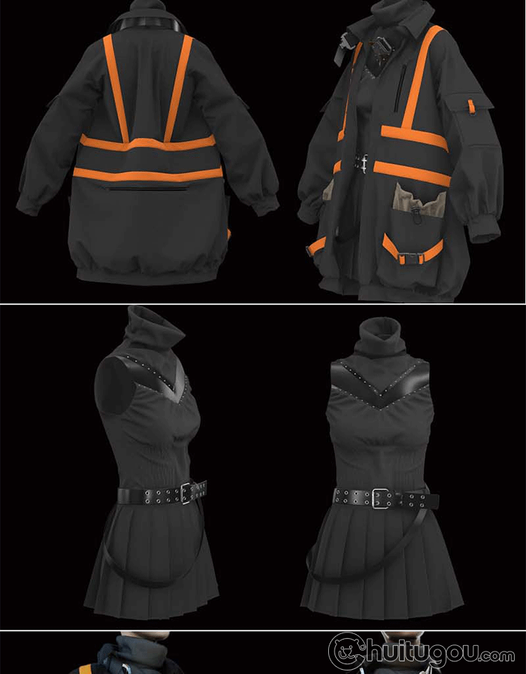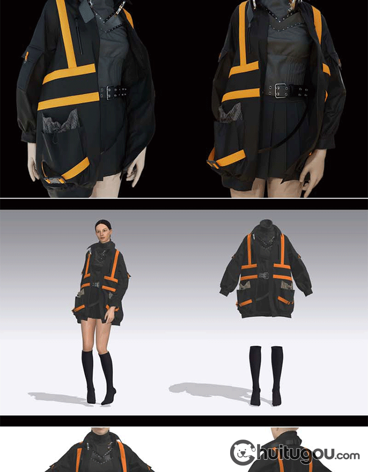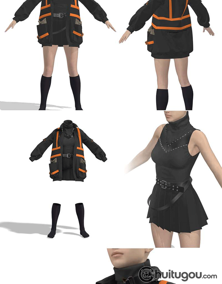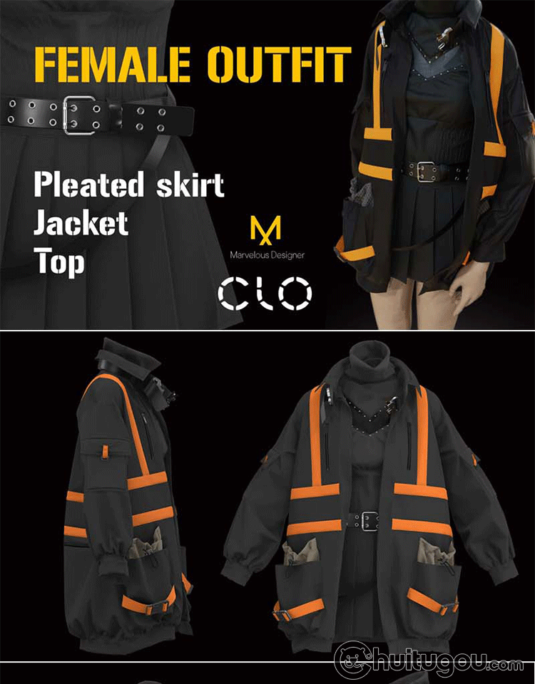 MD Clo3D女性时尚赛博朋克运动套装zprj服装打版 FBX衣服模型OBJ