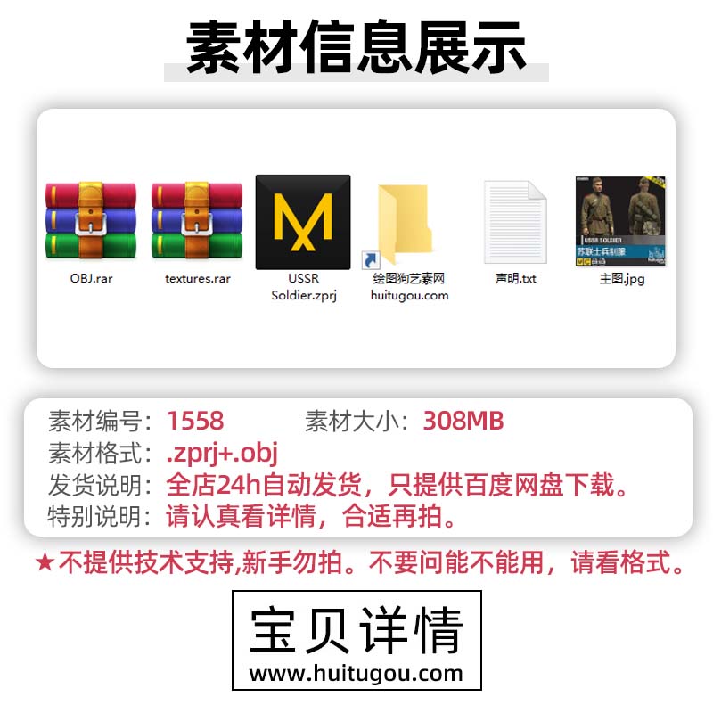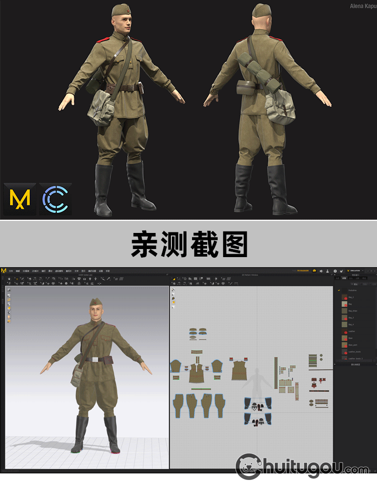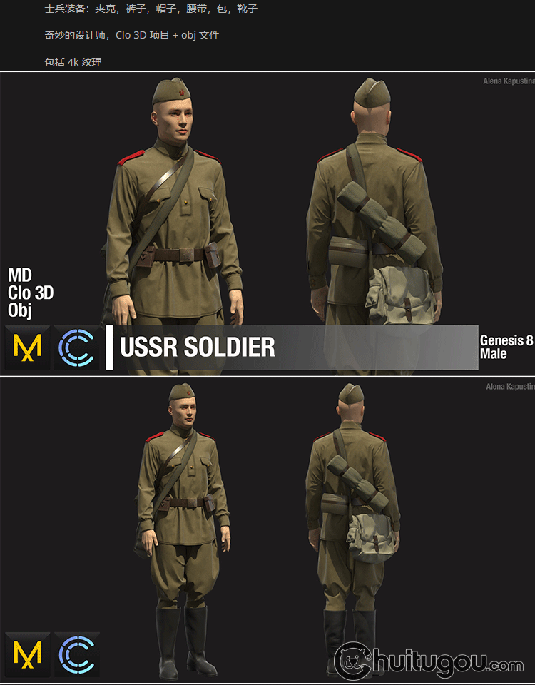 MD Clo3d苏联士兵制服靴子背包帽子套装ZPRJ服装打版文件 OBJ模型