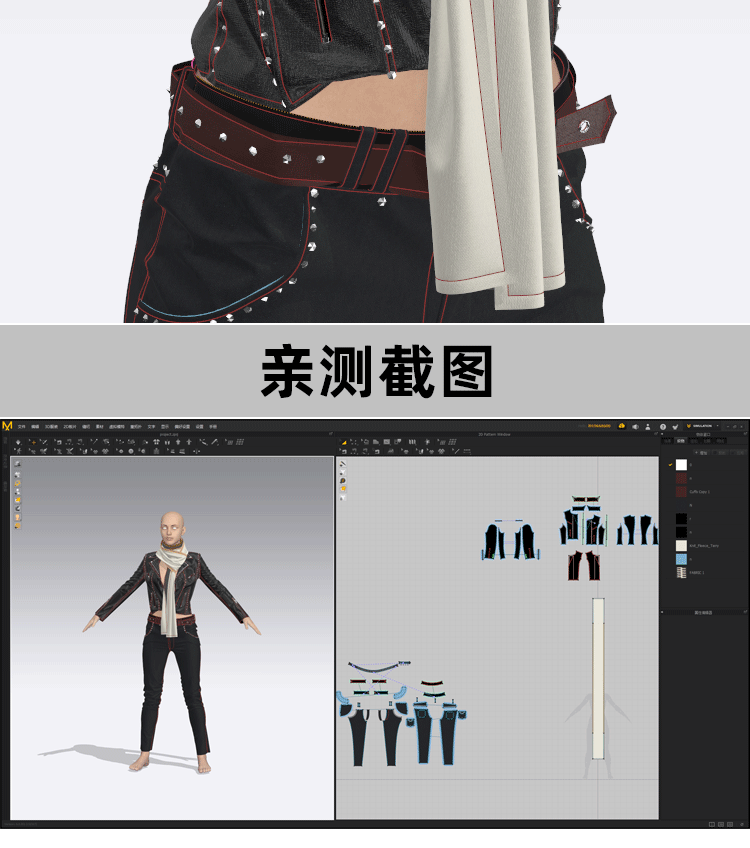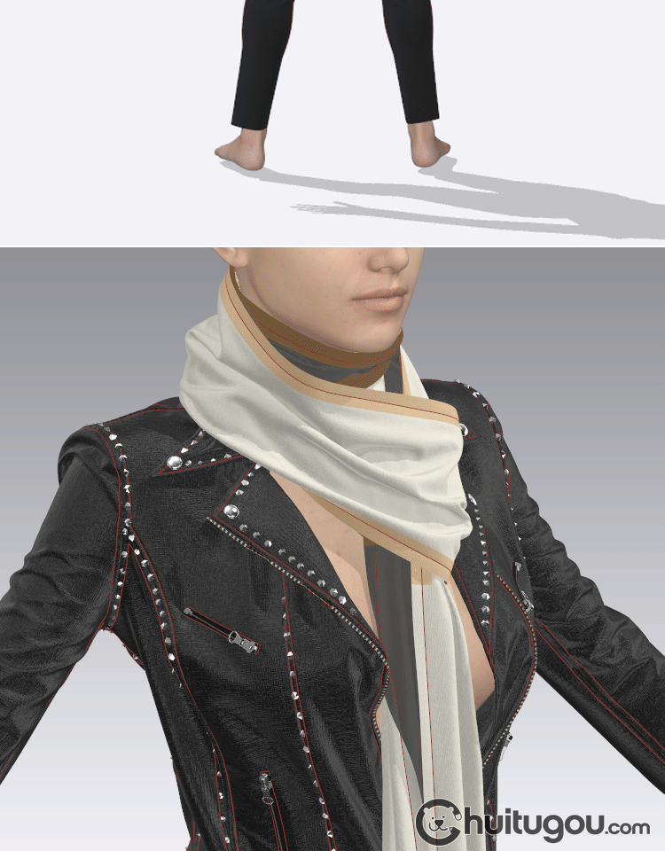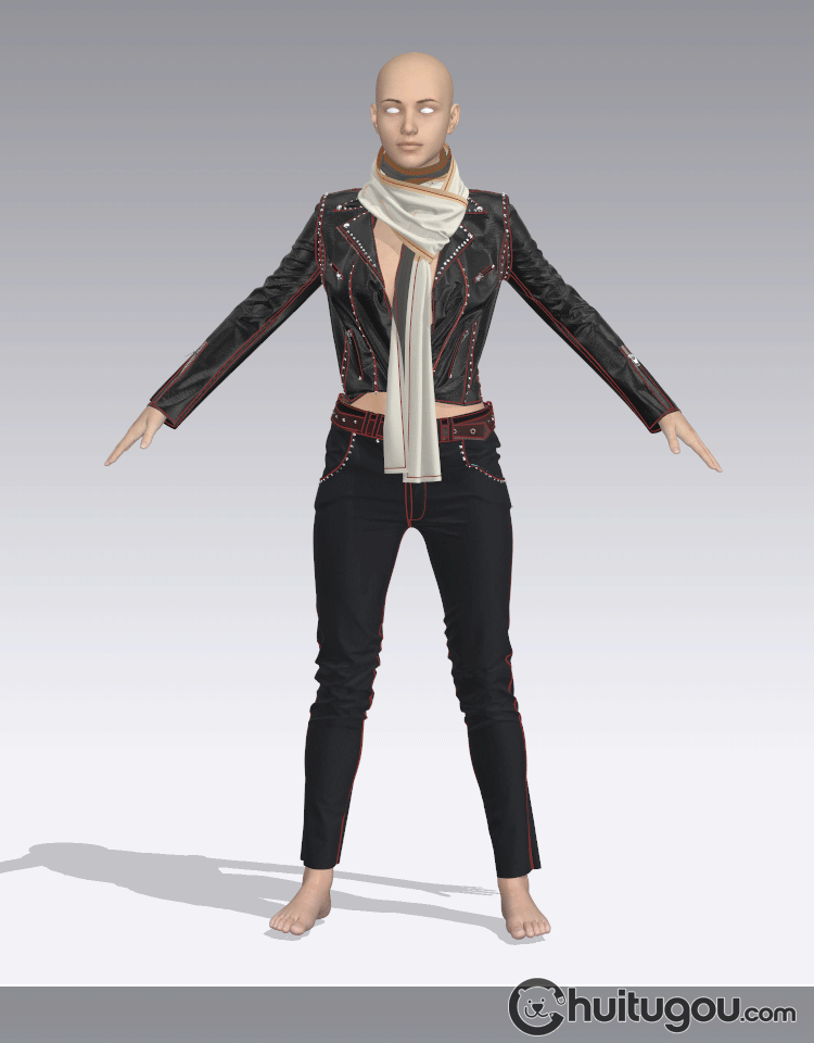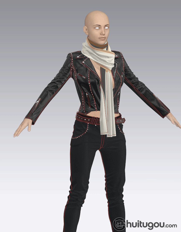 Marvelous Designer女士时尚皮衣牛仔裤围巾Clo3d服装设计源文件