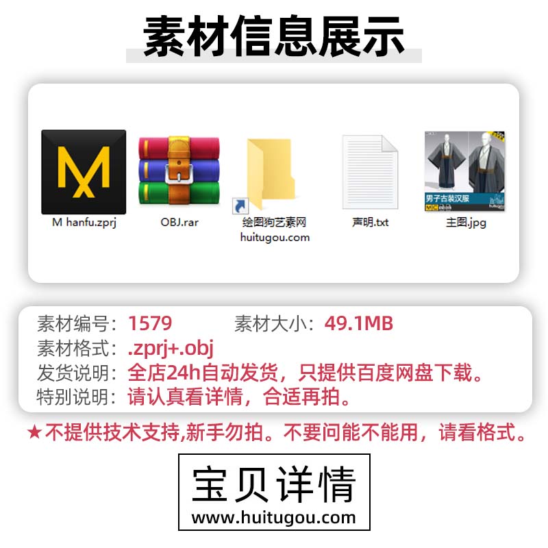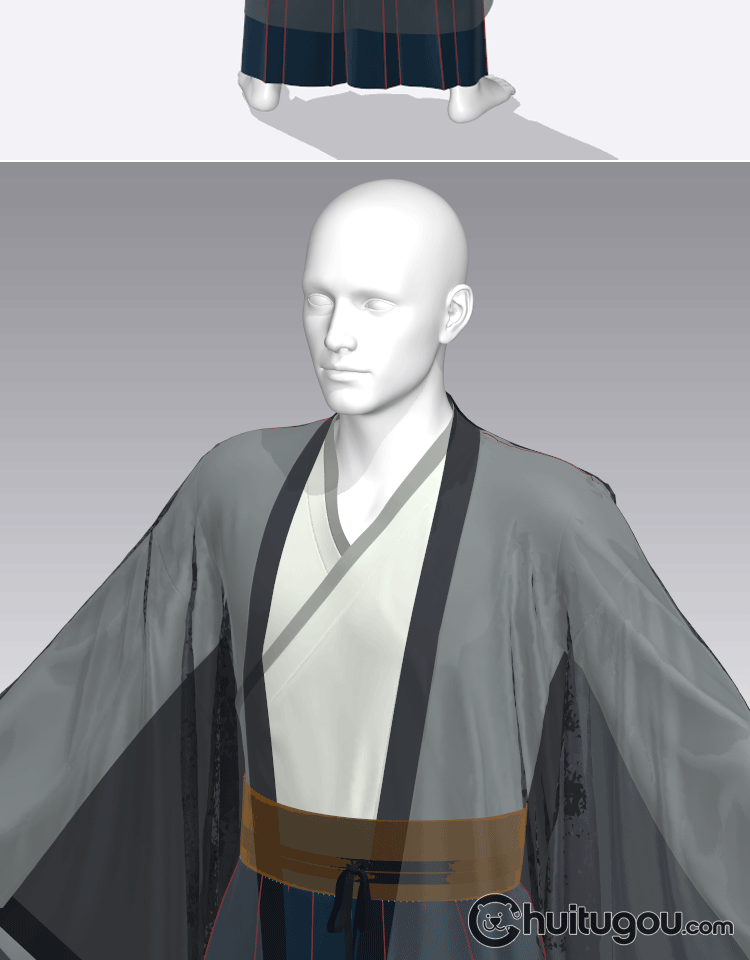 Marvelous Designer男子汉服国风中式古装CLO3D服装打版源文件OBJ