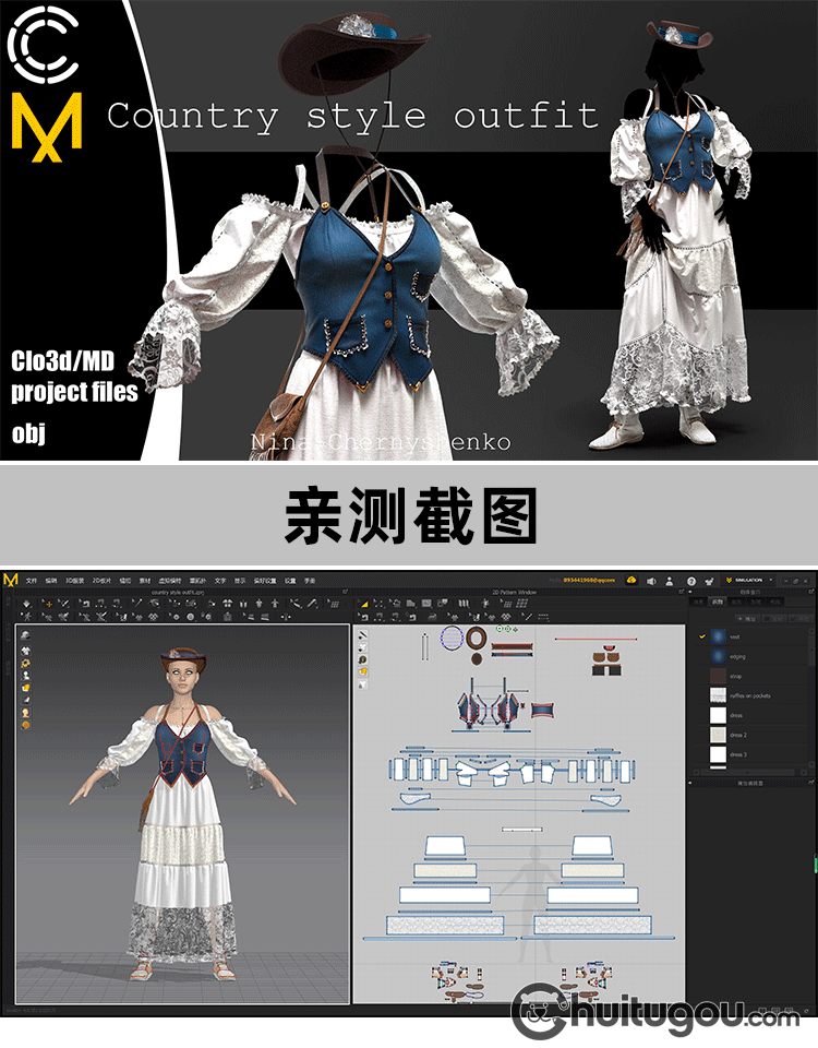 MD CLO3D乡村复古风格女装套装服饰服装打版素材3D源文件zprj obj