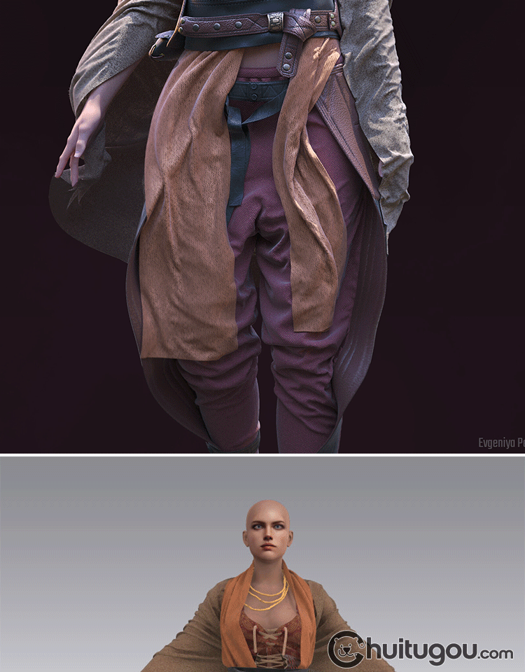 MD CLO3D复古奇幻风格女侠服装打版素材源文件3D设计模型zprj obj