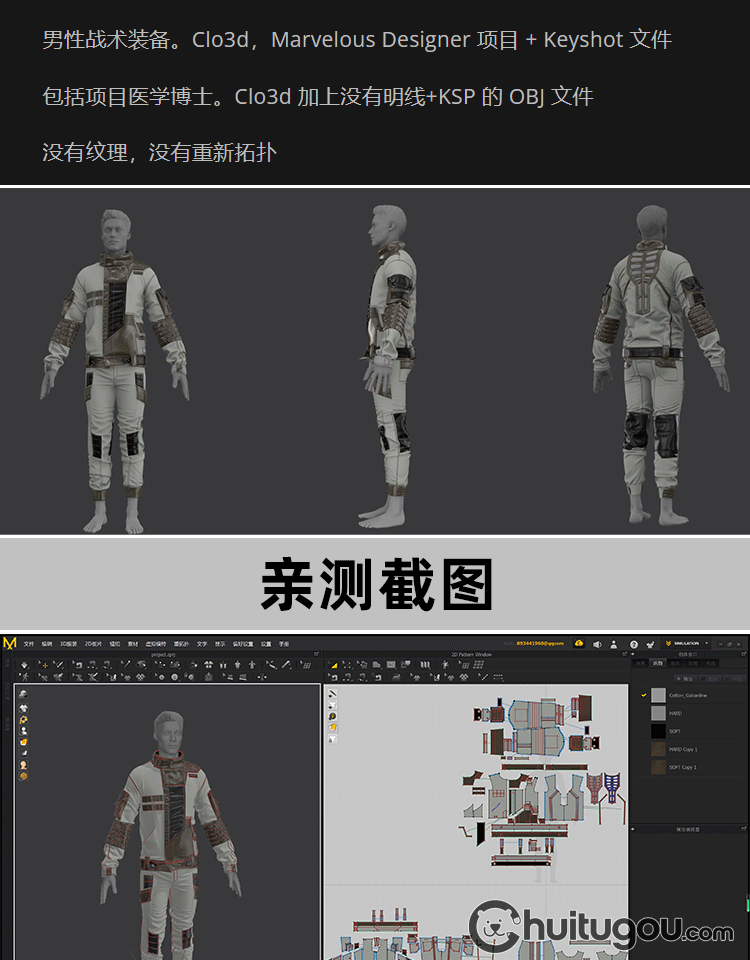 MD CLO3d男士衣服战术装备套装服装打版3D服装设计zprj素材源文件