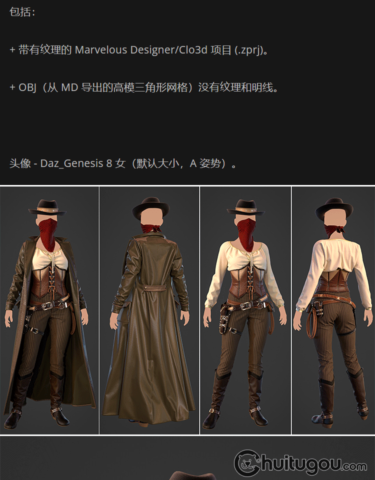 MD CLO3D服装牛仔套装女装服饰打版素材文件 靴子皮大衣面罩配饰