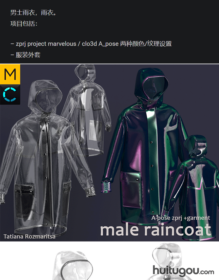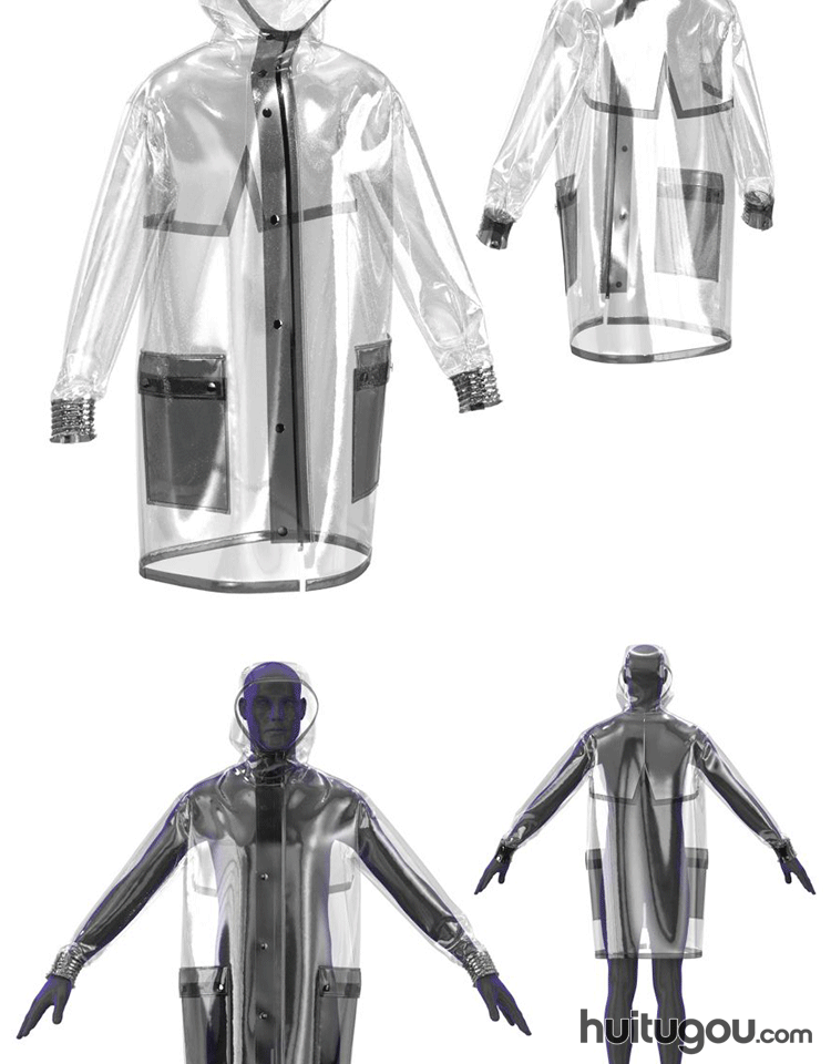 MD CLO3D男士透明镭射雨衣风衣外套街头潮装zprj服饰打版设计素材