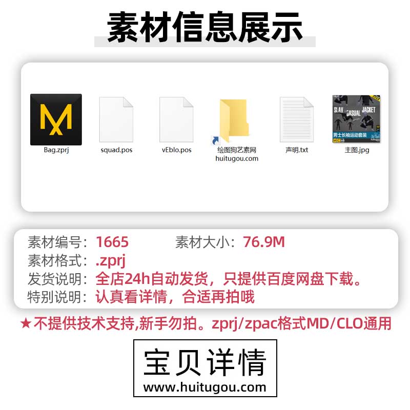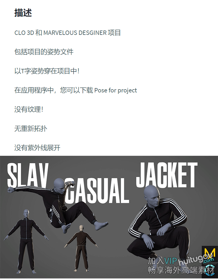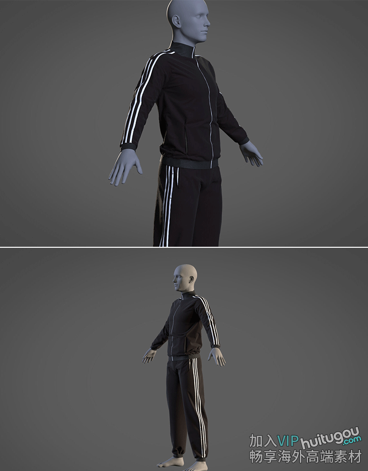MD衣服素材CLO3d男士长袖运动服套装zprj格式服装打版设计源文件