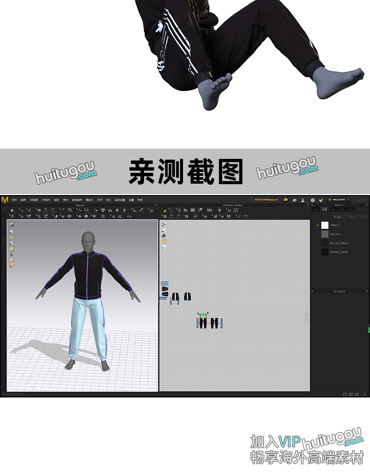 MD衣服素材CLO3D女士运动服装套装ZPRJ格式服装打版设计纸样工程