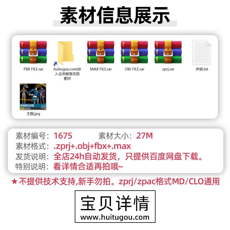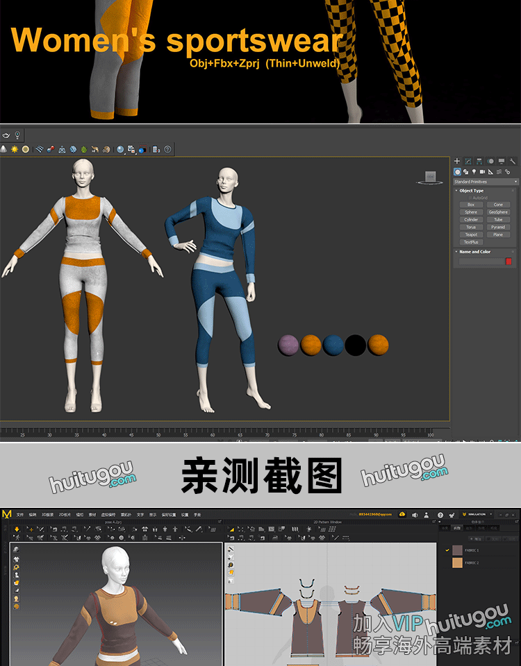 MD衣服素材CLO3D女士运动服装套装ZPRJ格式服装打版设计纸样工程