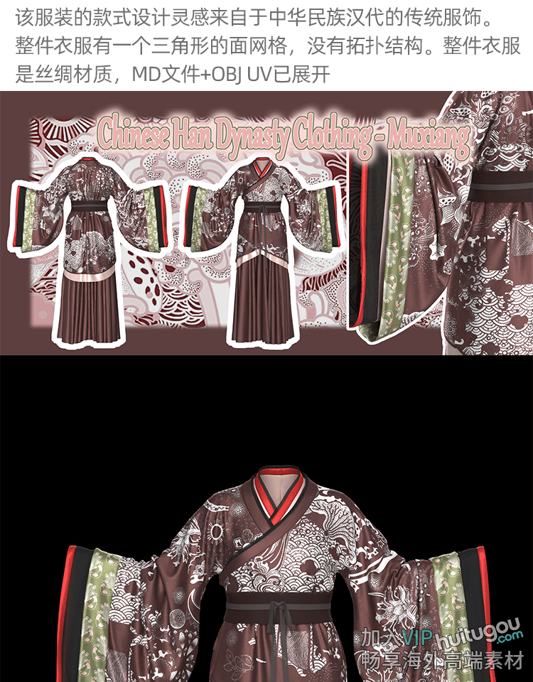 MD古风衣服素材Clo3d汉代传统服饰丝绸袍子服装设计打版工程文件