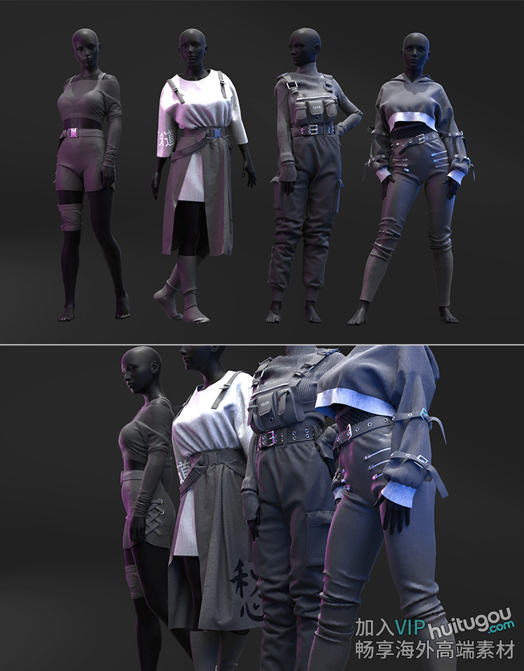 MD衣服素材CLO3D灰色系概念风女装套装ZPRJ服装设计工程纸样文件