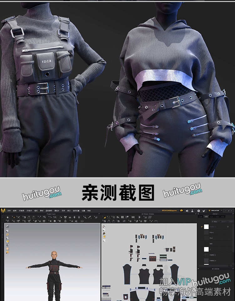 MD衣服素材CLO3D女士运动服装套装ZPRJ格式服装打版设计纸样工程