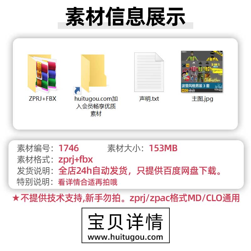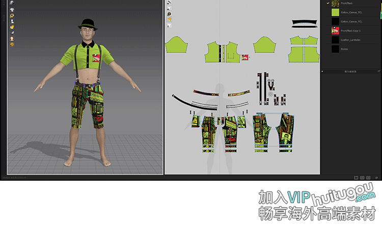 MD服装纸样CLO3D波普华丽风格男装衬衫短裤ZPRJ衣服工程源文件FBX