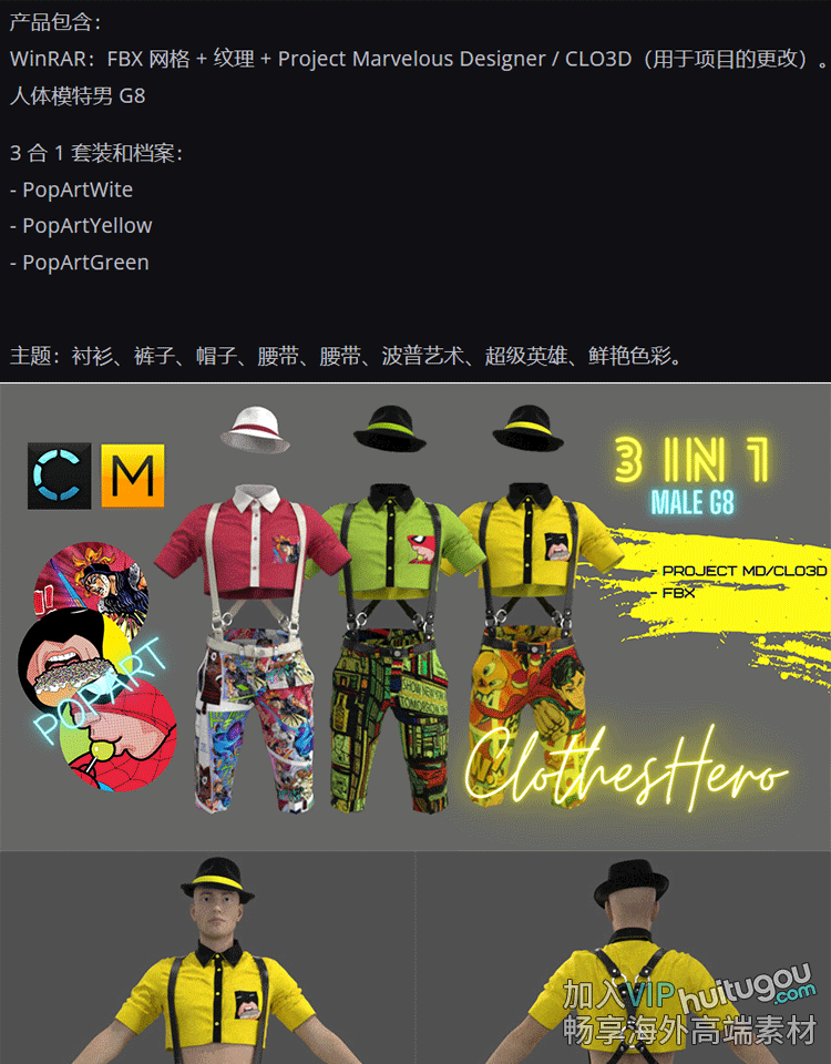 MD衣服素材CLO3D波普浮夸华丽风格女装衬衫裤子ZPRJ服装打版工程