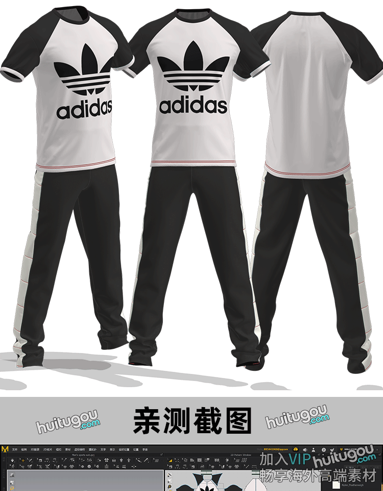 MD衣服素材CLO3D运动男装长裤短袖T恤ZPRJ格式服装打版工程源文件