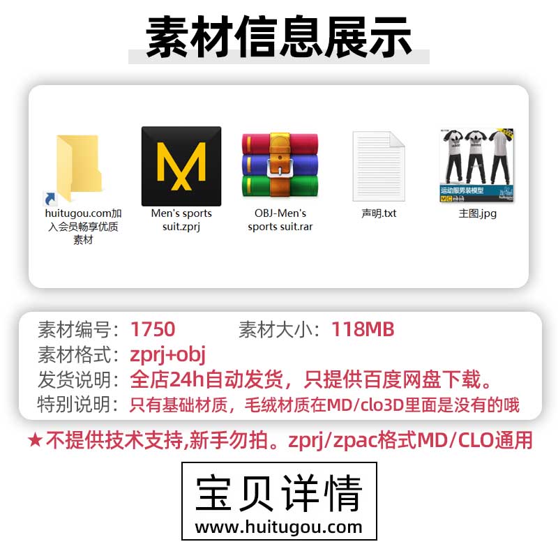 MD男装素材CLO3D羽绒服裤子呢大衣内衣衬衫袜子背心领带ZPRJ工程