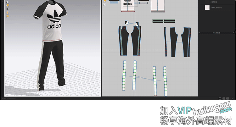 MD衣服素材CLO3D女士运动服装套装ZPRJ格式服装打版设计纸样工程