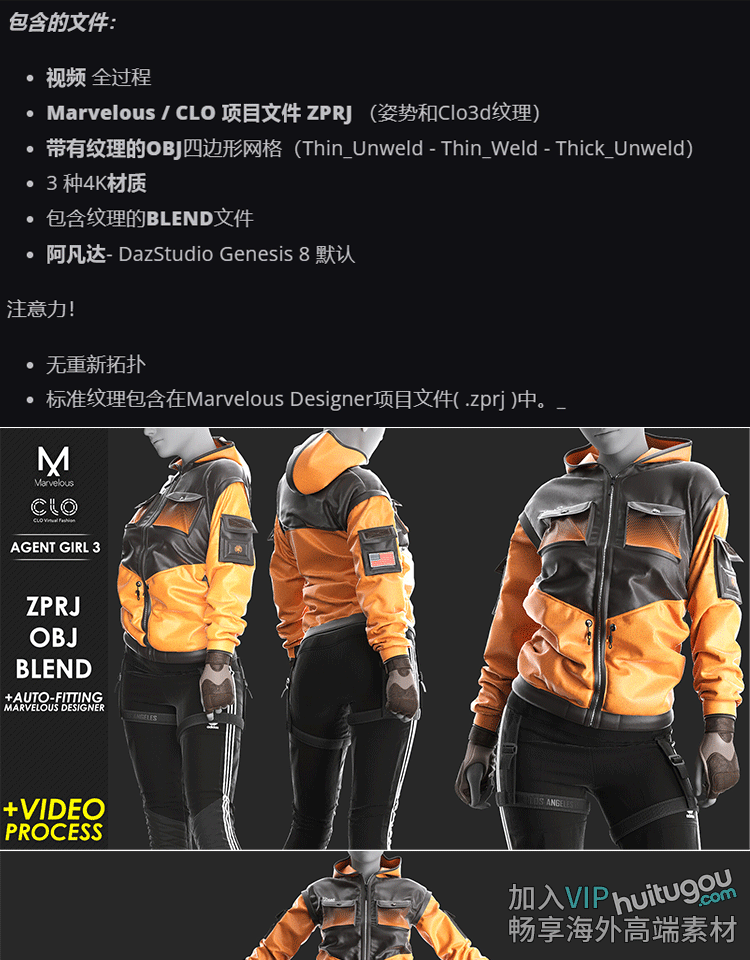 MD赛博科幻女装套装CLO3D服装打版纸样工程源文件ZPRJ衣服素材OBJ