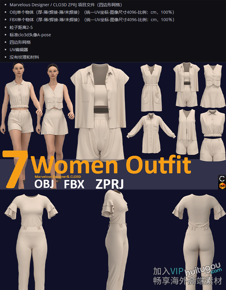 MD衣服素材CLO3D女士休闲运动装基础版型 服装打版纸样工程源文件