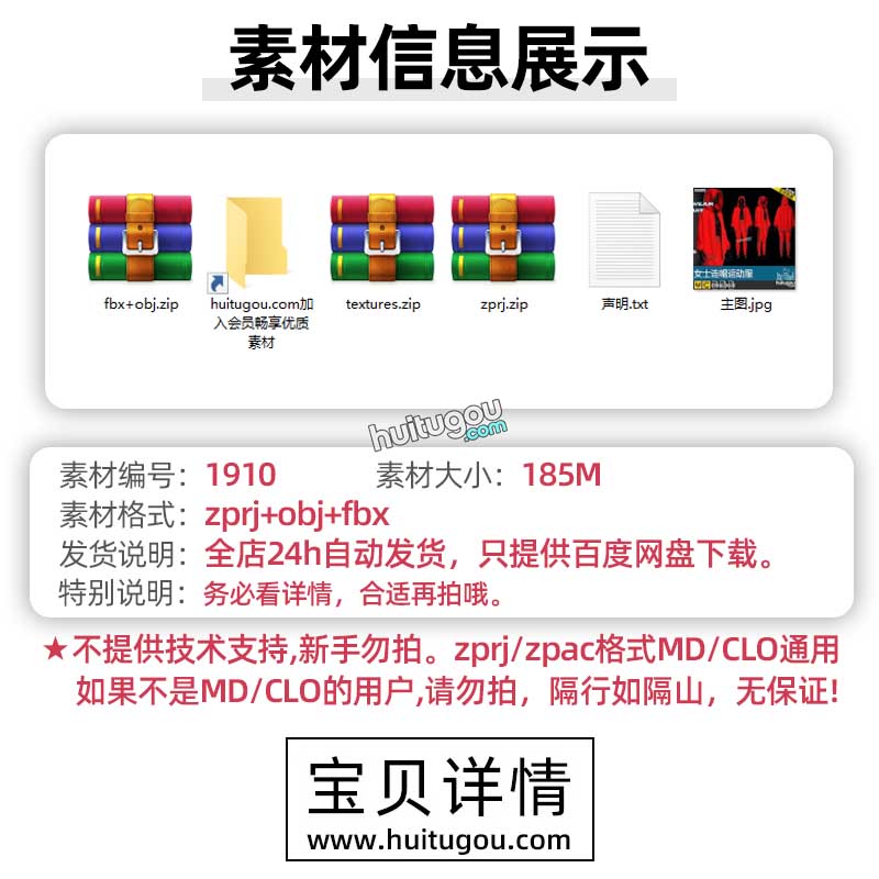 MD衣服模板CLO女士优雅裙子套装ZPRJ服装纸样工程文件FBX模型OBJ