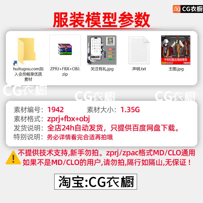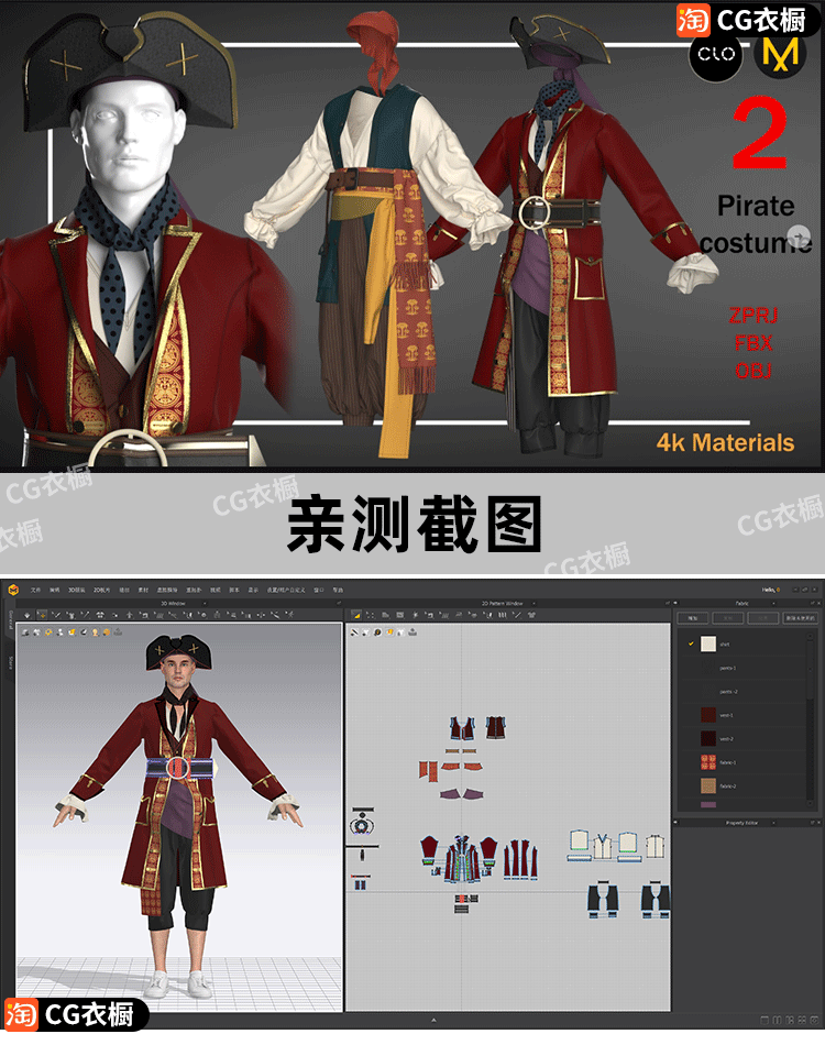 Marvelous中世纪复古海盗服装MD衣服模型CLO3D服装打版建模素材