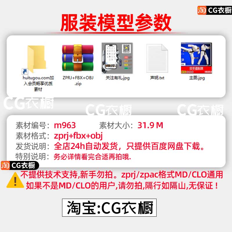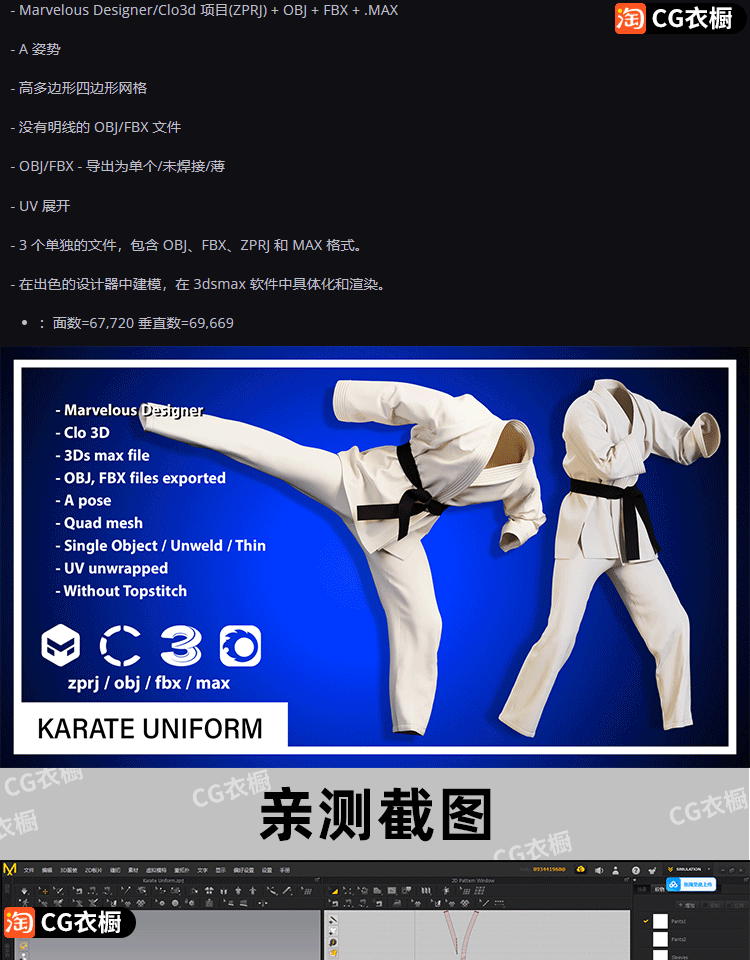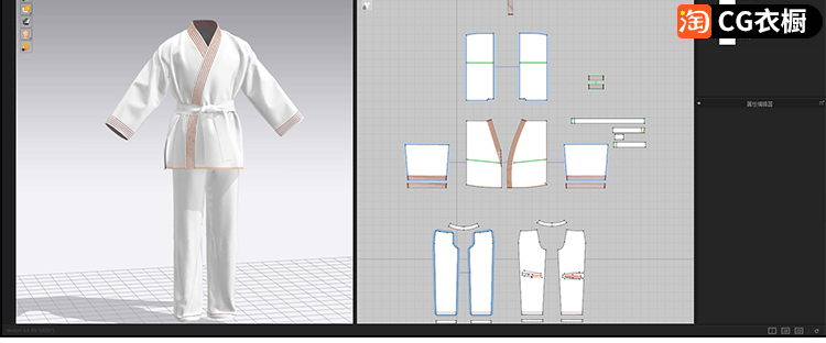 MD素材文件CLO3D空手道制服运动套装ZPRJ服装打版纸样工程文件OBJ