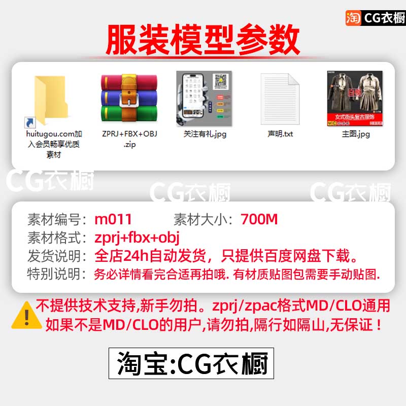 MD衣服素材CLO女式古典复古风女装套装4款服装设计打版纸样3D素材