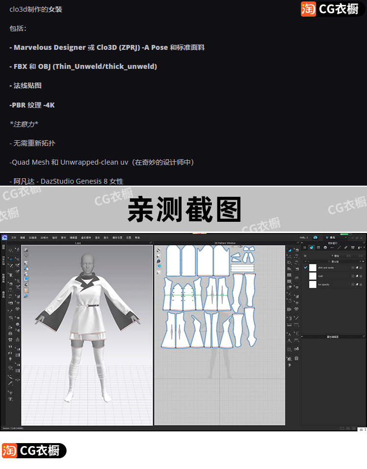 MD服装工程CLO3D性感动漫风格套装CLO虚拟衣服建模打版设计素材