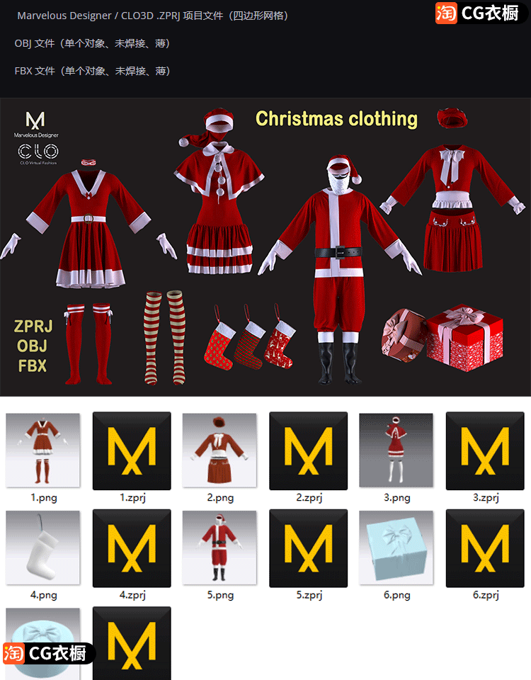 CLO3D服装打版模型MD圣诞衣服节日套装CLO打版建模工程源文件素材