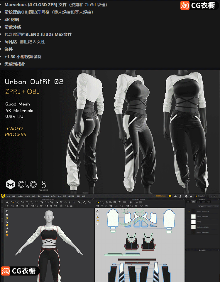 MD服装模型CLO3D都市女装潮流舞者街头穿搭套装ZPRJ纸样工程文件