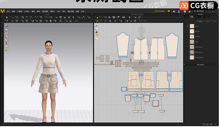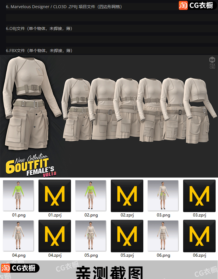 MD服装模板CLO3D素材6款女装短裤套装衣服基础版型3D模型ZPRJ工程
