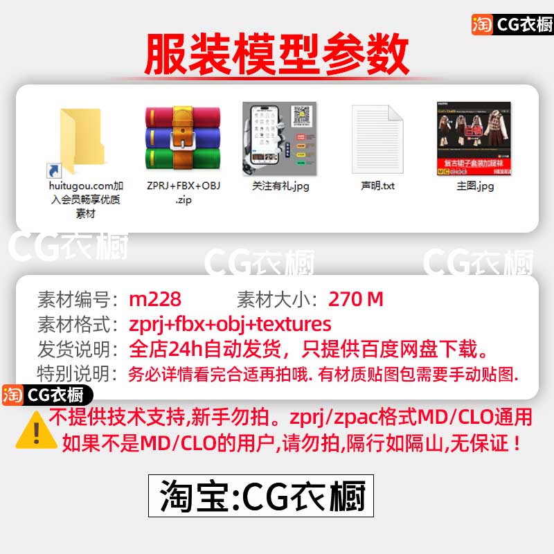 MD衣服模型CLO3D素材复古女装连衣裙子3D纸样模型ZPRJ纸样工程