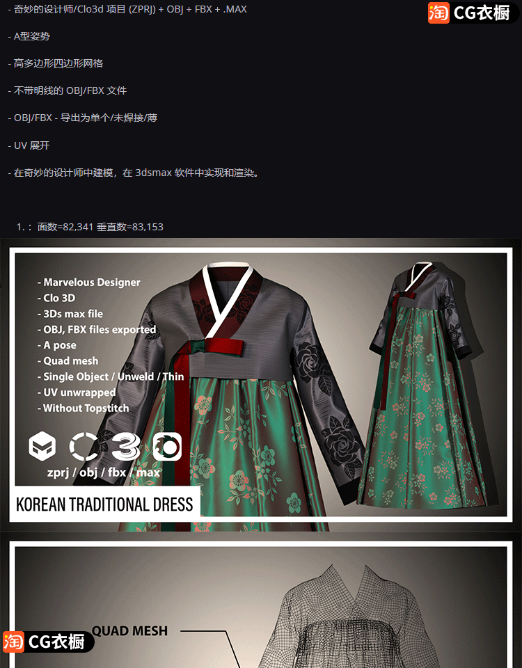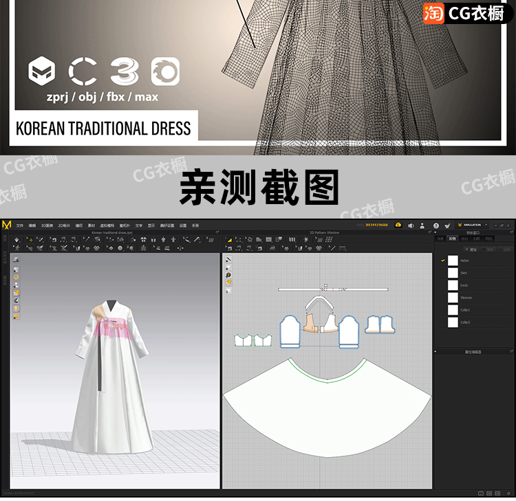 MD衣服模型CLO3D素材韩国传统服饰古装3D模型ZPRJ纸样工程源文件