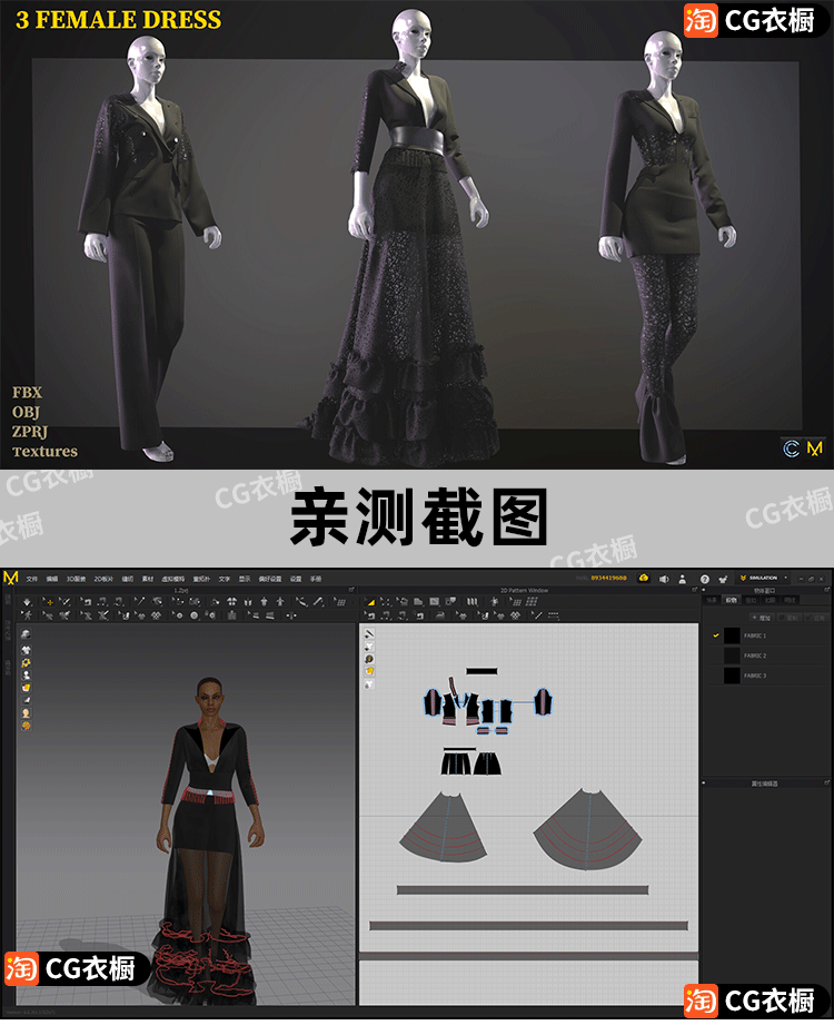 MD衣服CLO服装模型3套时尚女装礼服套装演出服西装连衣裙ZPRJ素材