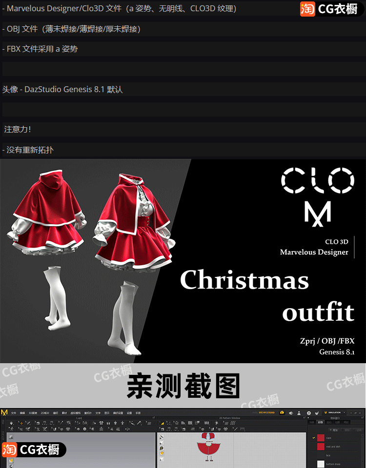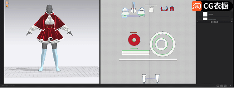 CLO3D服装素材MD模型圣诞女郎裙子套装ZPRJ衣服纸样工程源文件