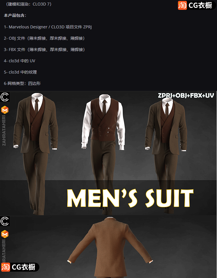 Marvelous/CLO项目文件1款男士西装西服正装套装ZPRJ格式OBJ模型