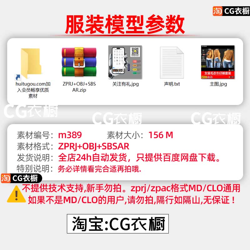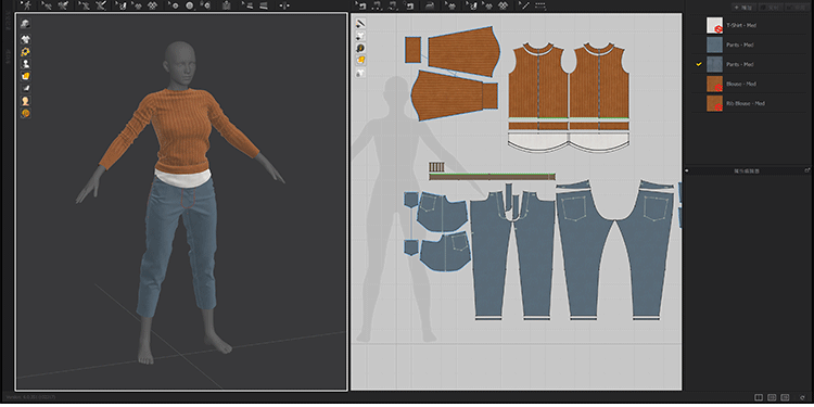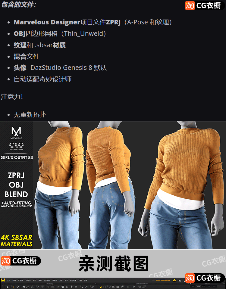 marvelous designer/clo3d女装毛线衣牛仔裤套装zprj纸样OBJ模型