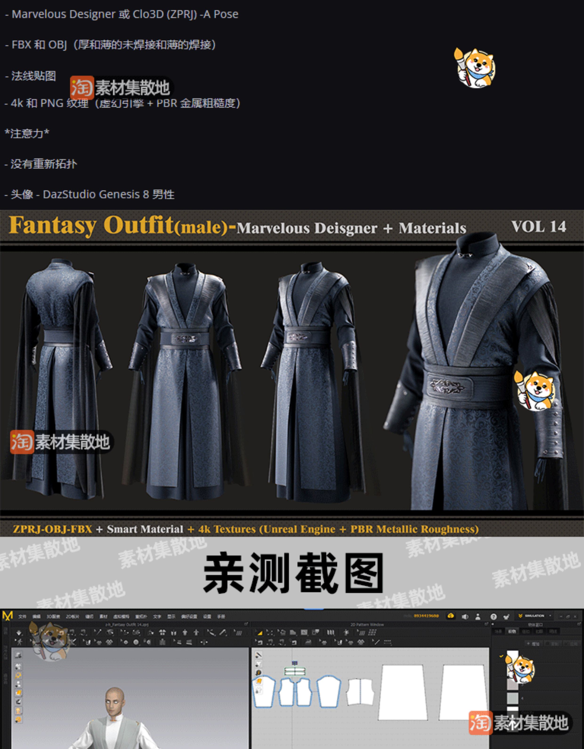 MD服装幻想男性套装CLO服饰连体衣服ZPRJ模型打版纸样工程源文件