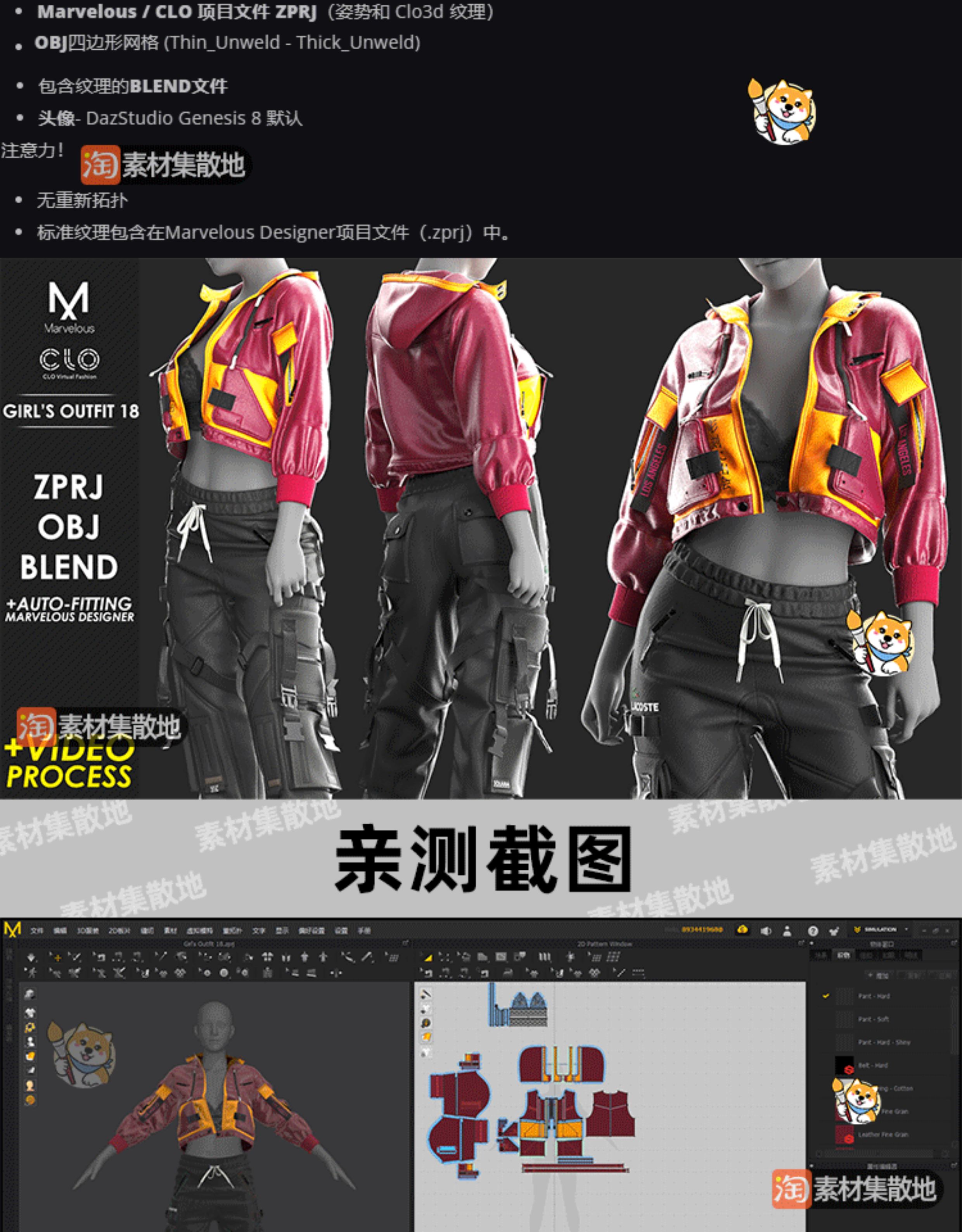 clo3d女团服装套装服装时尚外套长裤内衣服饰ZPRJ模型打版源文件