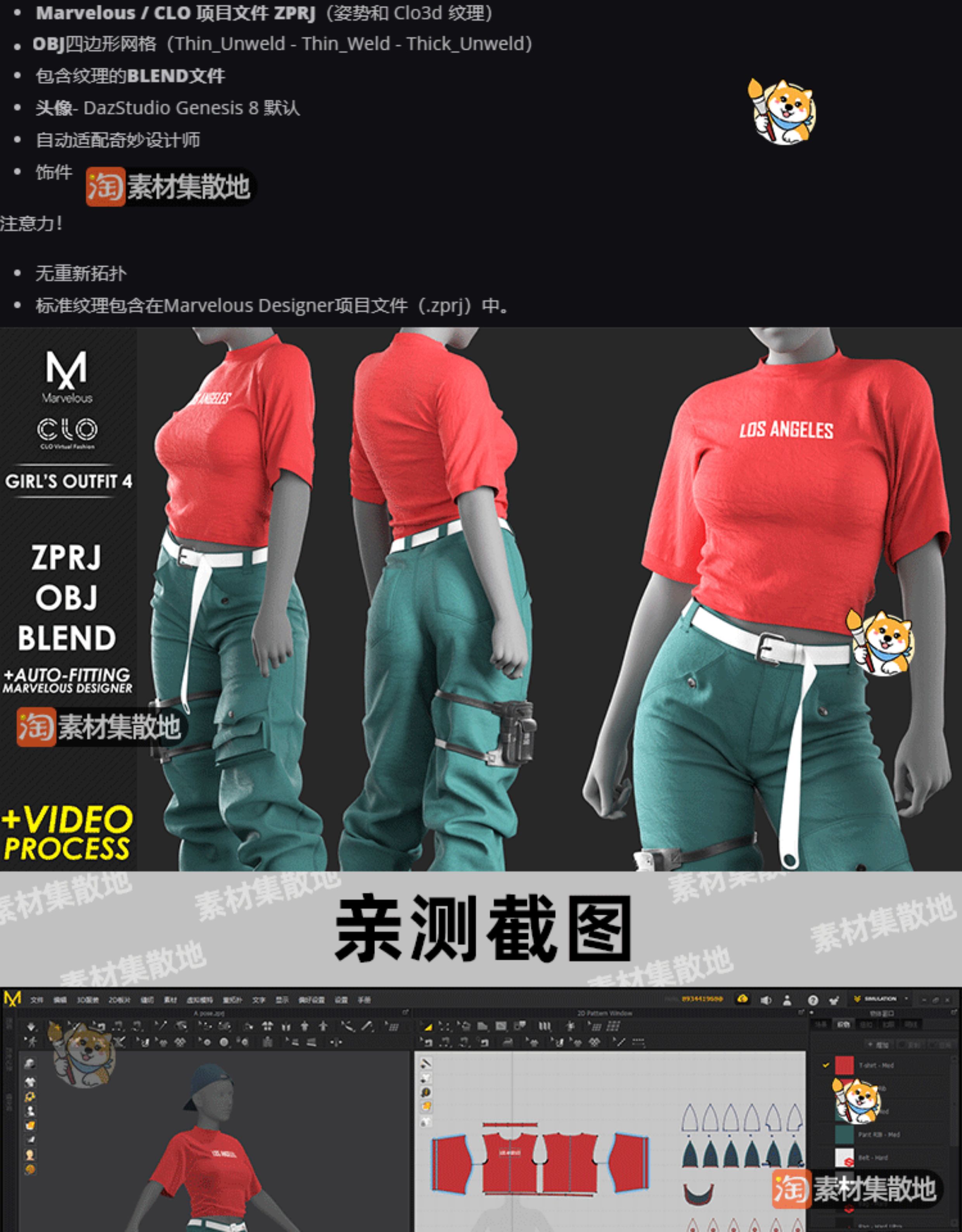 MD服装T恤连体衣套装CLO3D连衣裤上衣牛仔裤套装ZPRJ模型打版文件