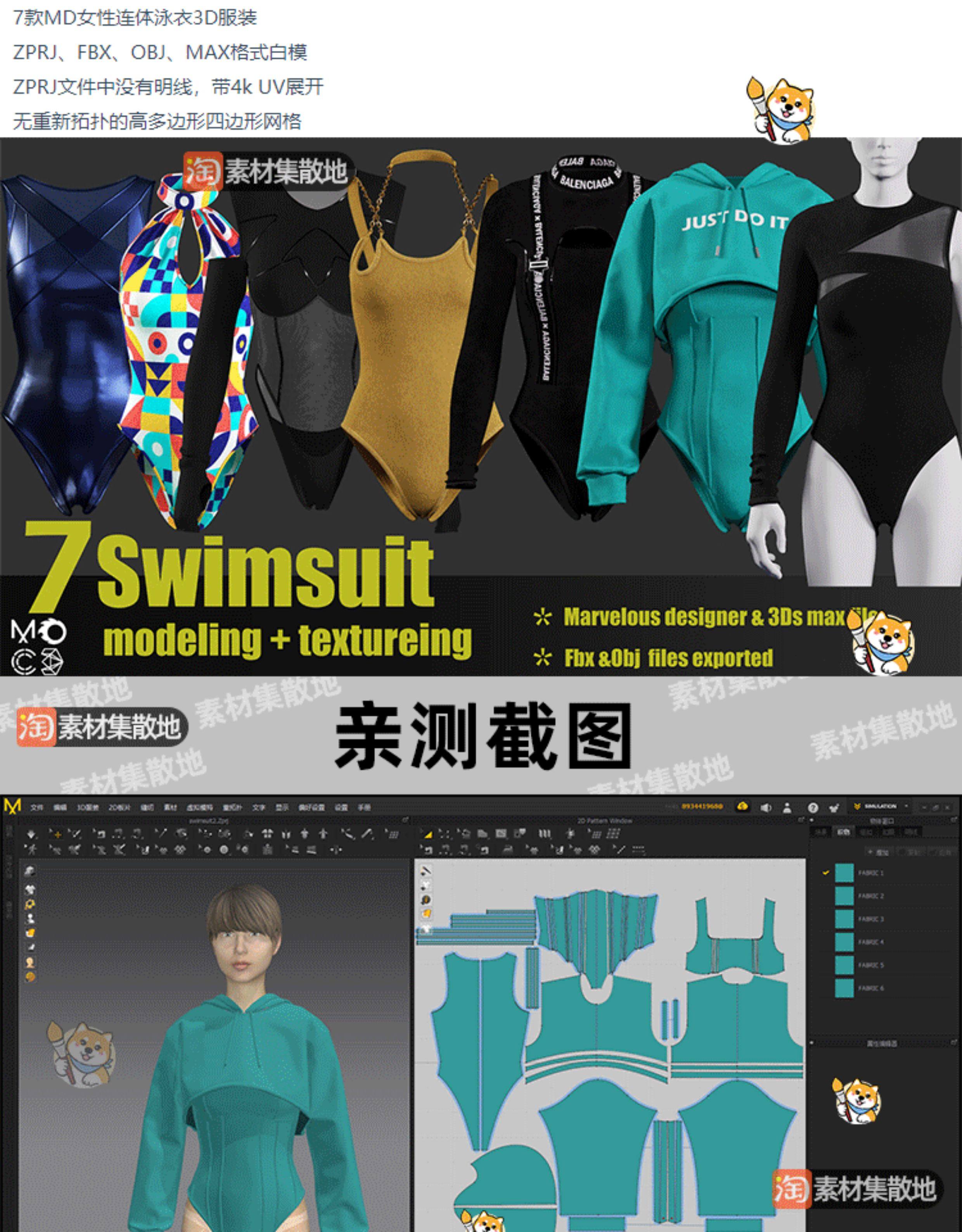 7款女性连体泳衣CLO3D服装女士游泳服套装ZPRJ模型打版纸样文件