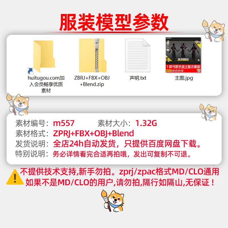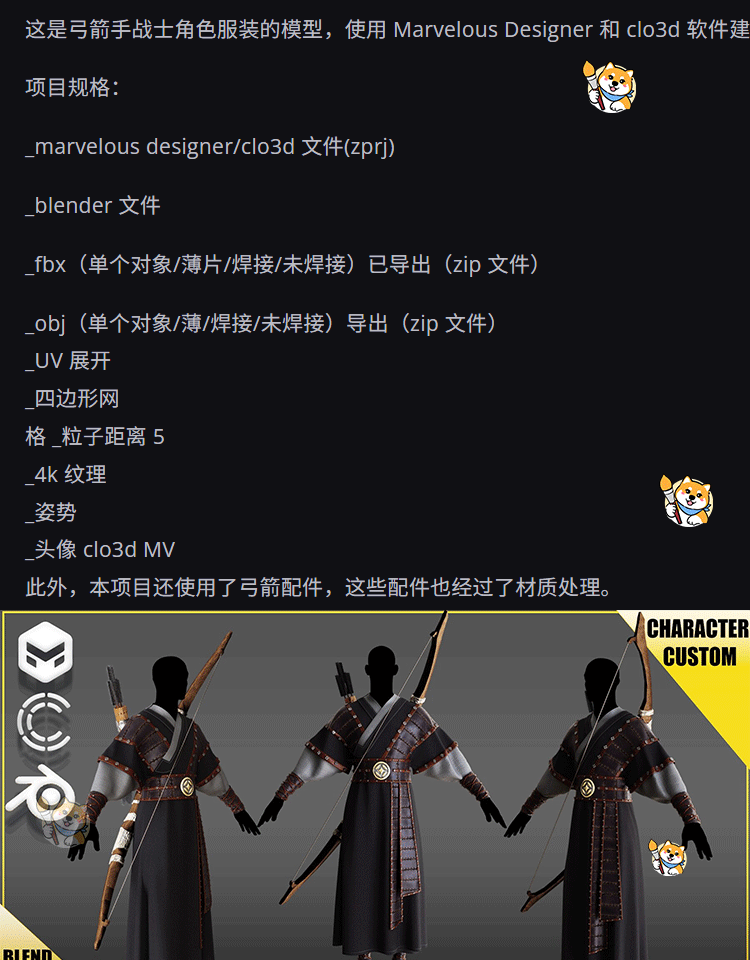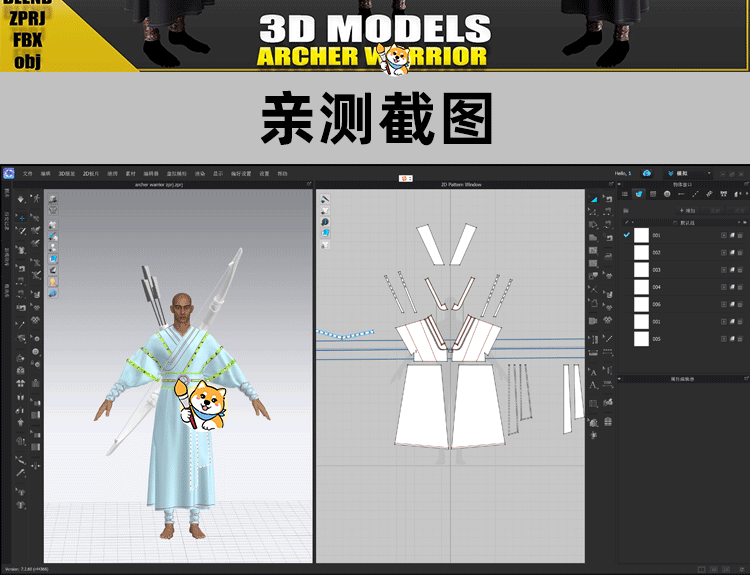Marvelous/Clo3D衣服素材1款弓箭手战士复古套装古装服装纸样版片