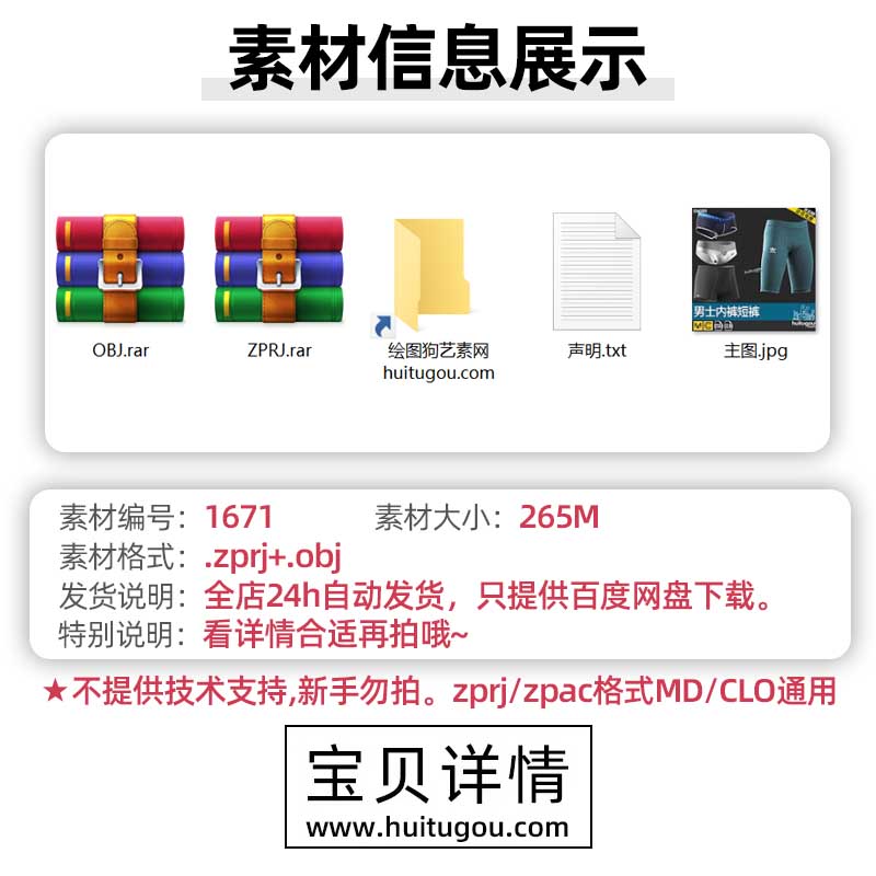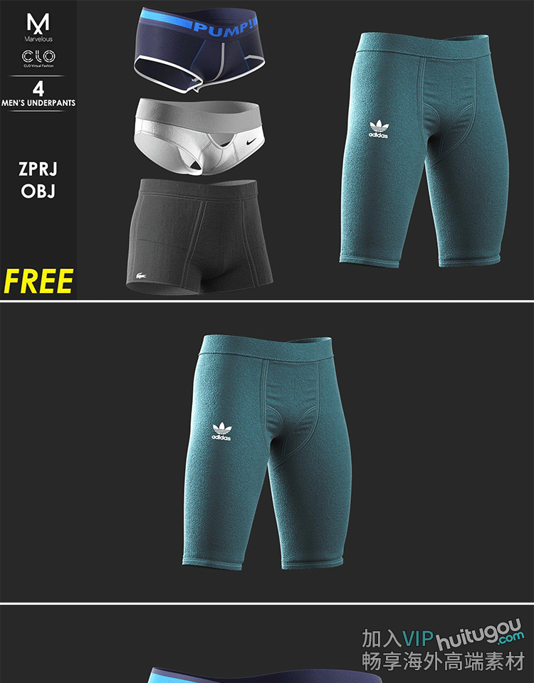 MD男士内衣内裤Clo3D服装设计素材 ZPRJ项目衣服样纸文件OBJ模型
