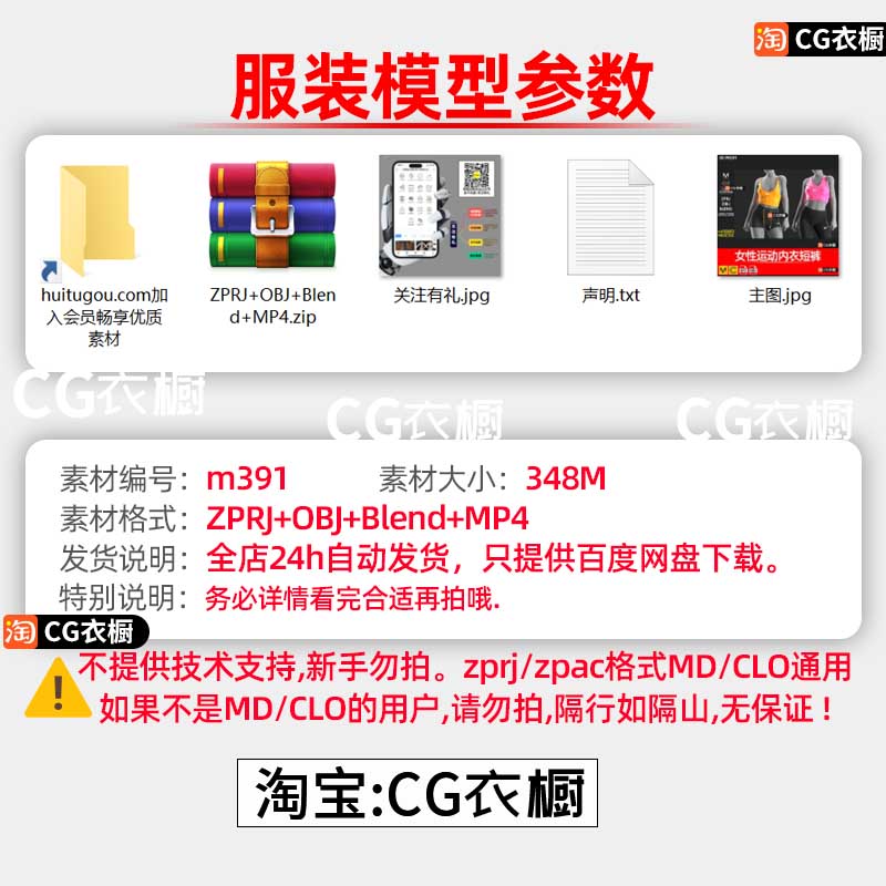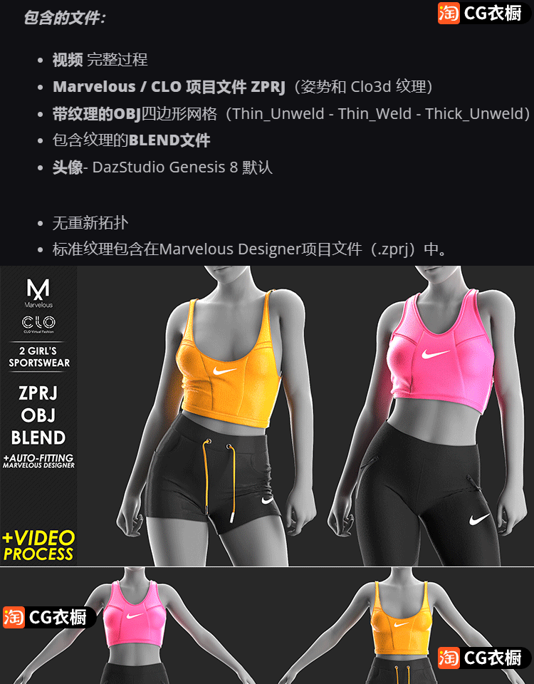 marvelous designer/clo3d女装紧身运动服瑜伽服zprj纸样obj模型