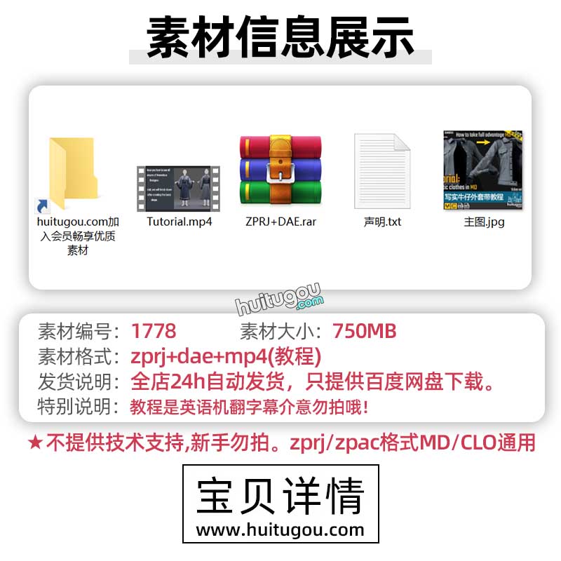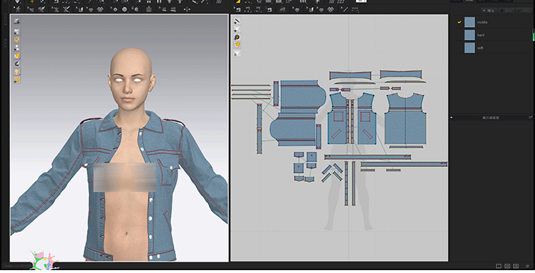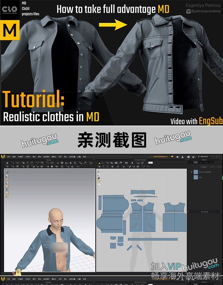 MD牛仔外套上衣CLO服装纸样项目文件zprj素材带写实细节视频教程