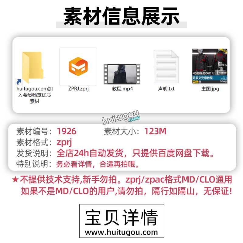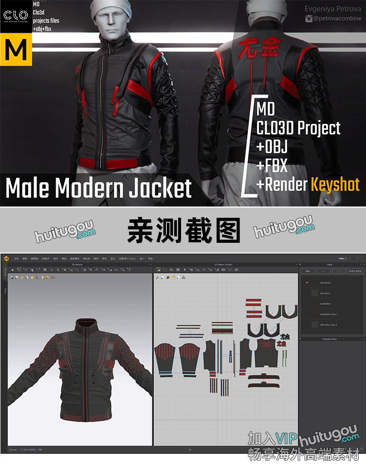 MD衣服纸样CLO男装夹克带教程ZPRJ格式服装打版工程文件模型素材
