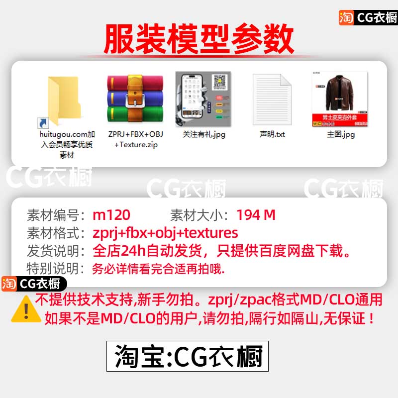 CLO3D服装素材MD街头服饰皮夹克外套上衣ZPRJ衣服建模打版3D工程